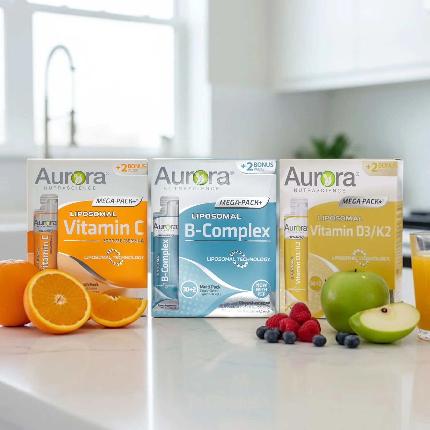 Optimize your nutritional foundation with this comprehensive trio of liposomal supplements. Enhanced absorption technology delivers vitamin C for immune support and collagen synthesis, B-complex vitamins for energy metabolism and nervous system function, and synergistic D3/K2 for bone health and cardiovascular support. Each 30-pack provides a month of targeted micronutrient replenishment, designed for those seeking advanced wellness through superior bioavailability and complementary nutrient combinations.